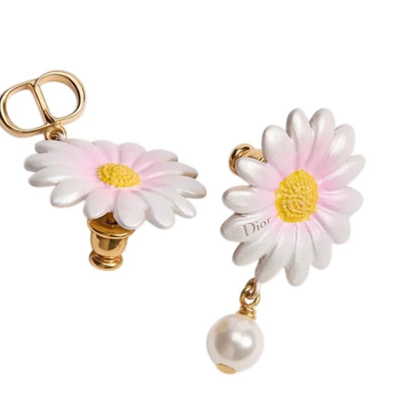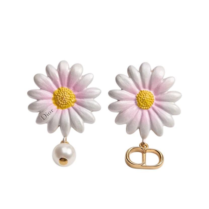Dior CD Garden 金色金屬珍珠拼色雛菊耳環