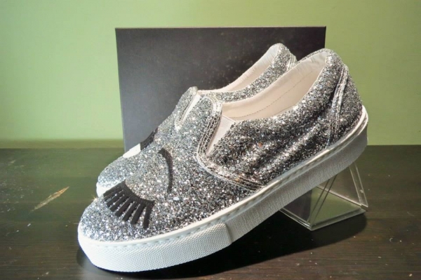 全新真品Chiara Ferragni CF879 亮銀色眨眼厚底樂福鞋 EU37