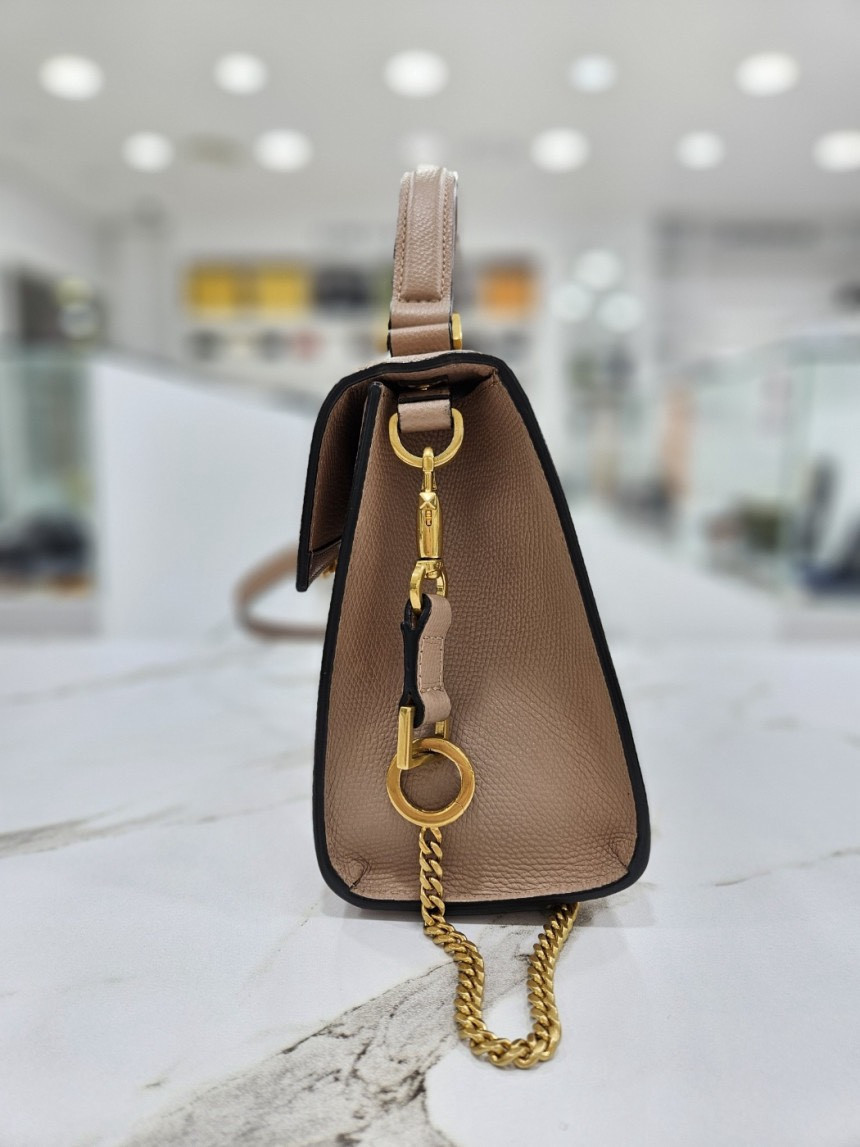 | 粉色粒面小牛皮展現柔美卻不失俐落的精品氣質, |