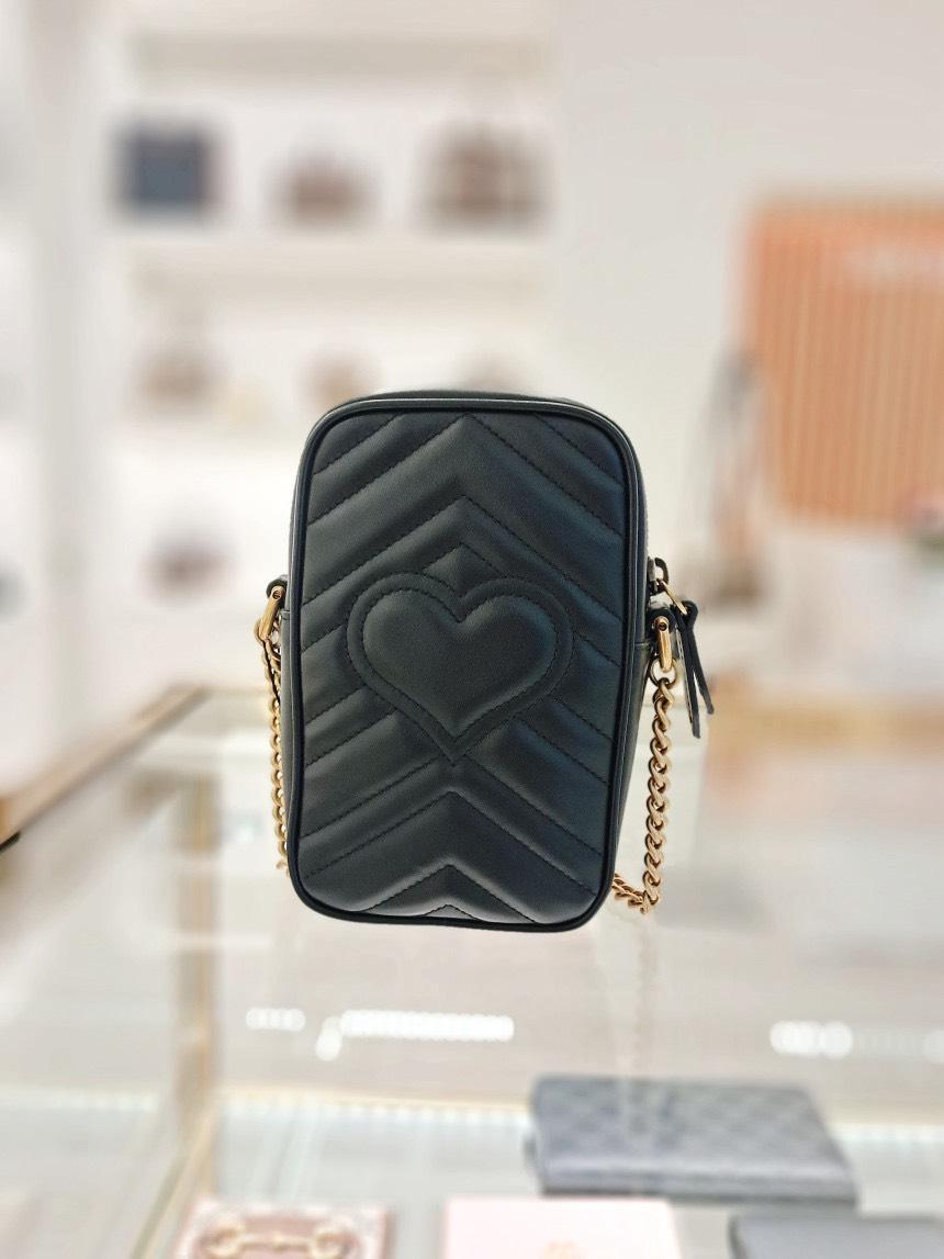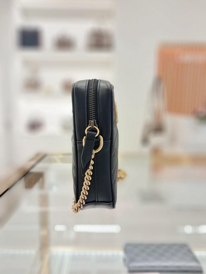 Gucci 598597 GG Marmont 迷你單肩包 黑色