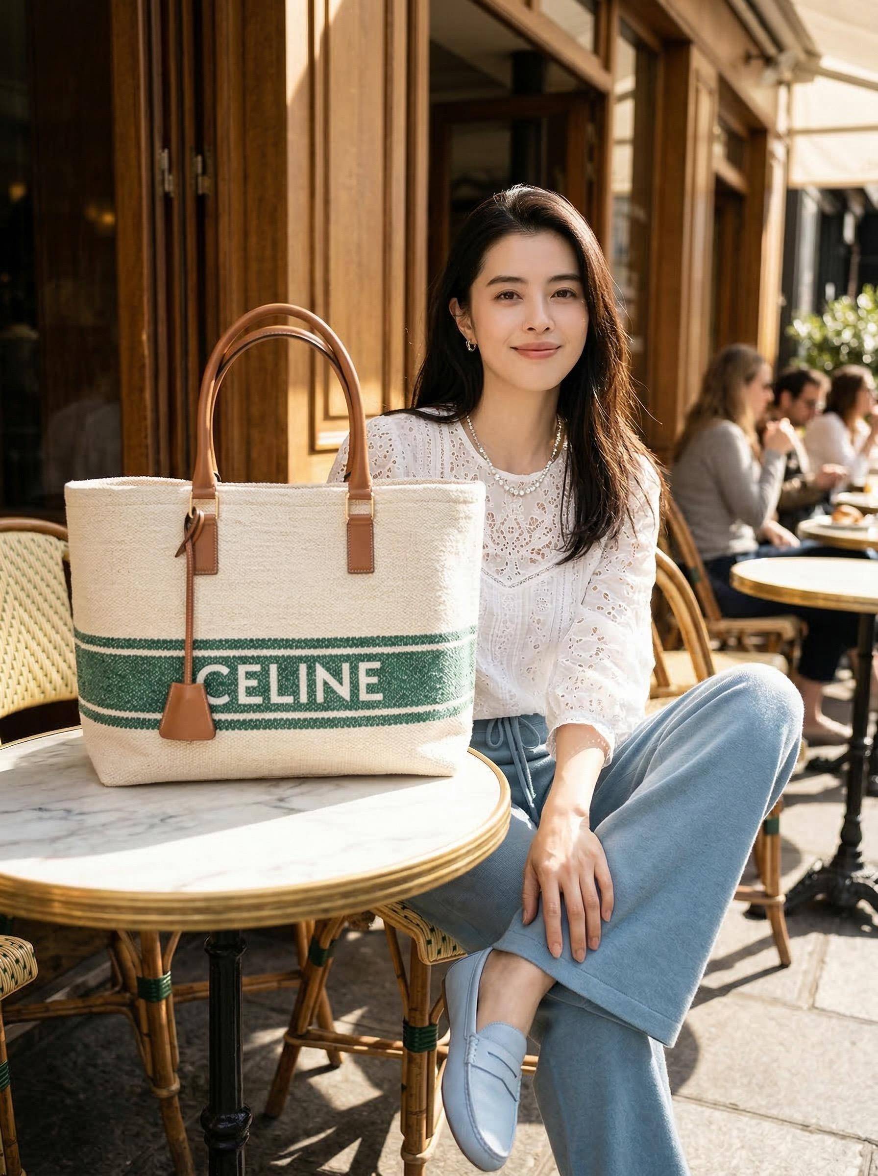 Celine Soleil 紡織和小牛皮橫式Cabas包