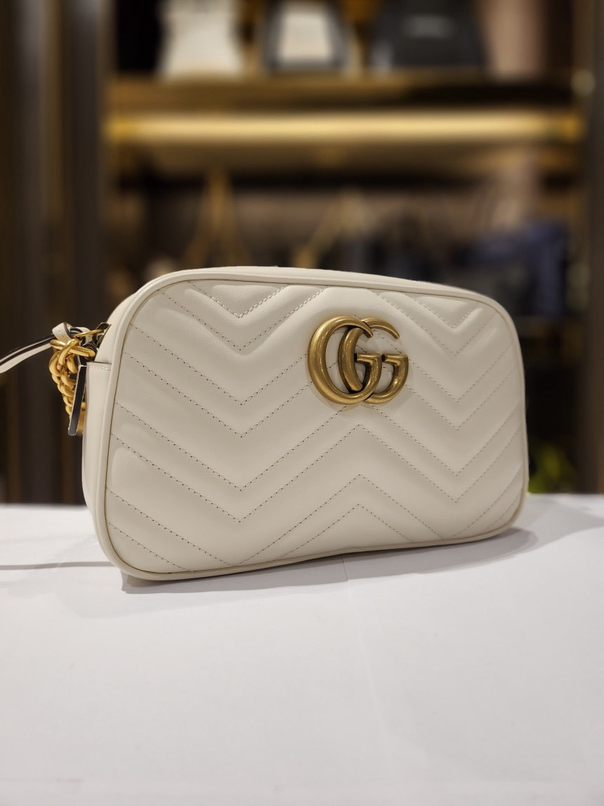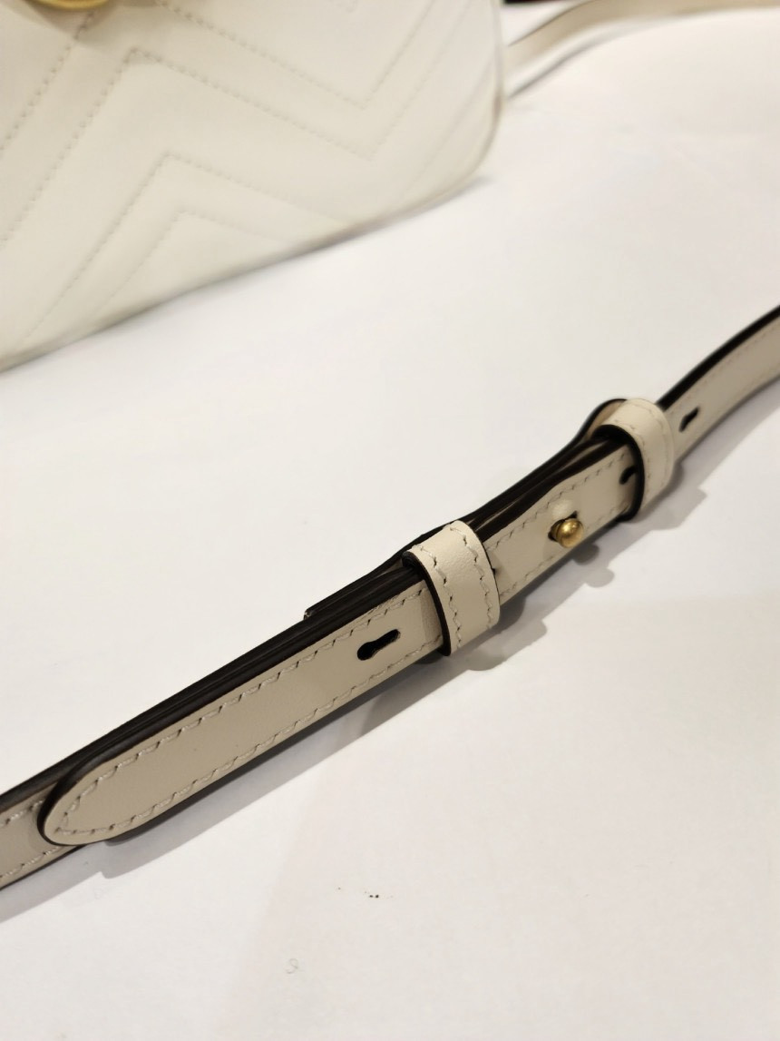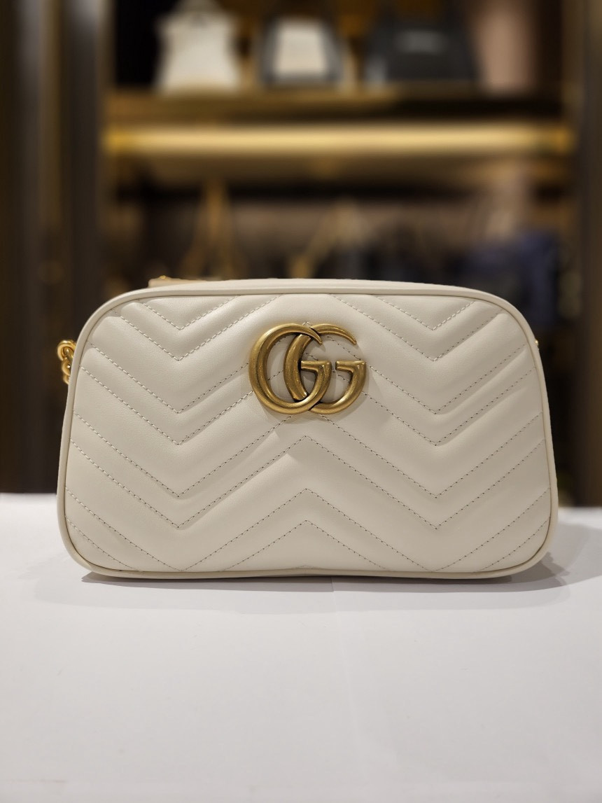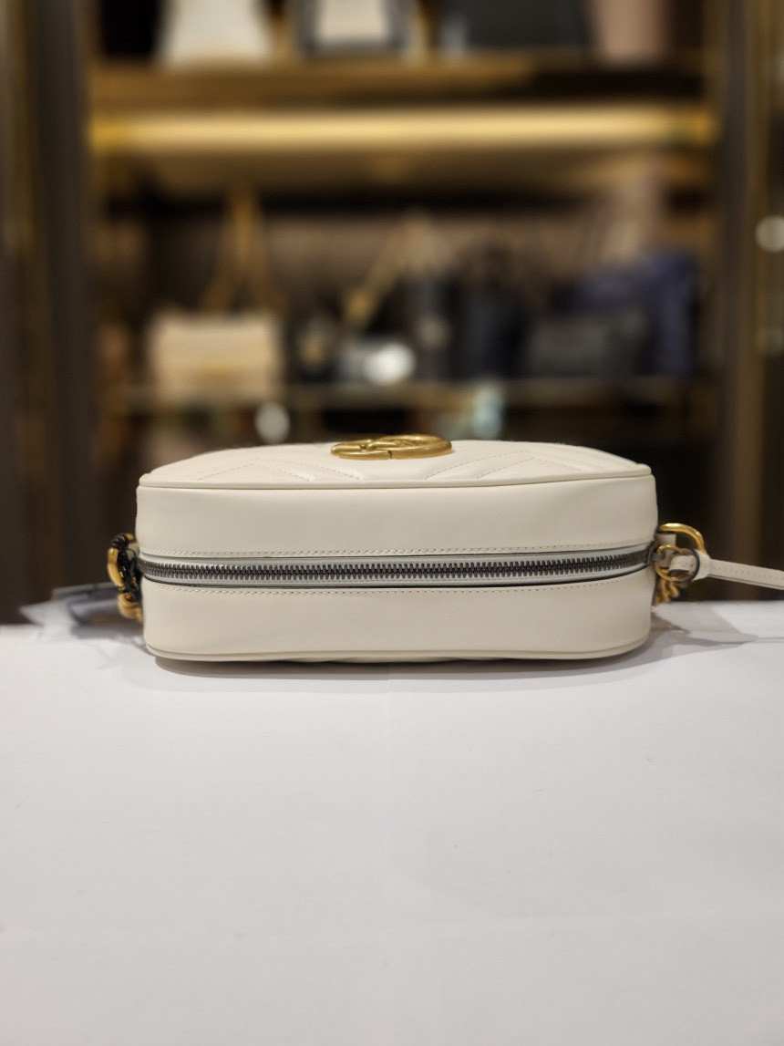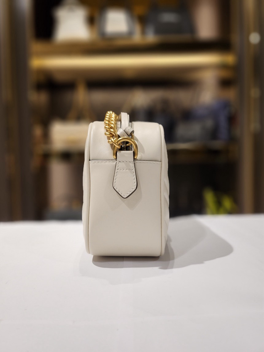 Gucci 447632 GG Marmont 小牛皮中款山型紋相機包 白色